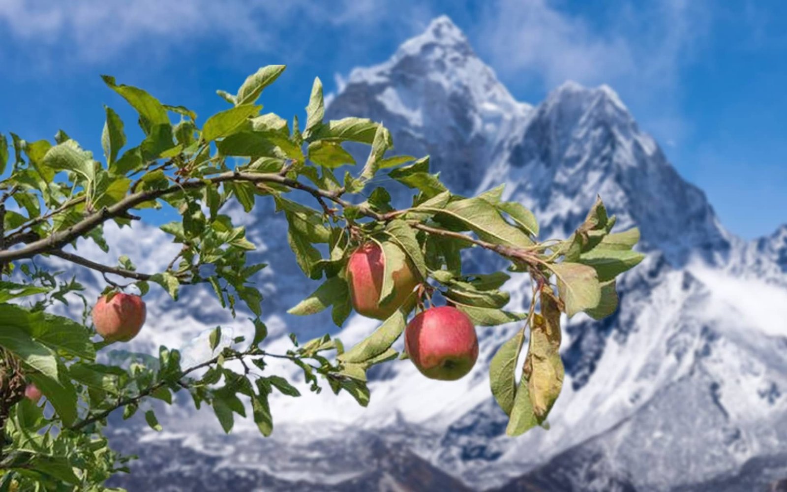 The Temperate climate, long winters, Arid conditions, High altitude, pollution free air, and pristine water from glaciers irrigating the orchards, all this adds up to the making of some of the sweetest, juiciest, crunchiest, and long shelf-life apples- the famous Kinnauri Apples.